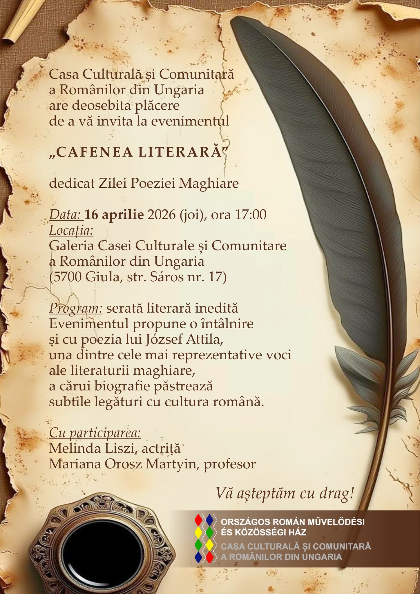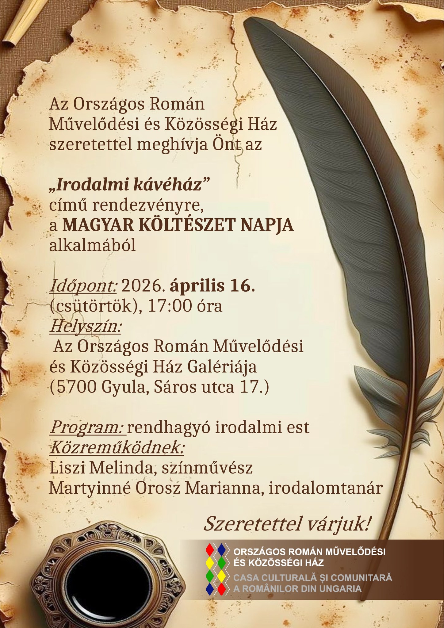 Meghívó az „Irodalmi kávéház” című rendezvényre a Magyar Költészet Napja alkalmából Szerző: beliczai | ápr 14, 2026 | Hírek